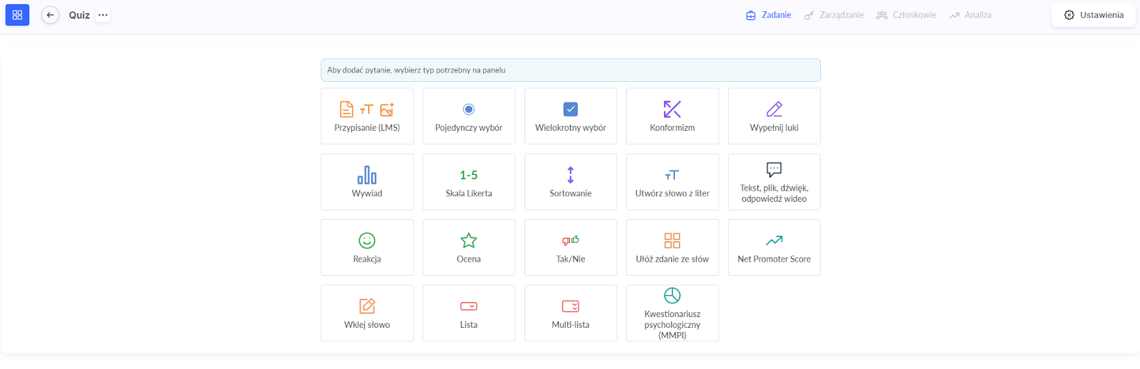 Więcej o typach zadań i ustawieniach quizów możesz dowiedzieć się w osobnym artykule.