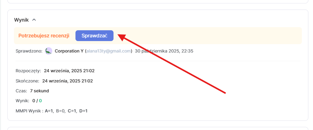 Jeśli test przewiduje przyznawanie punktów, możesz ocenić pracę ręcznie.