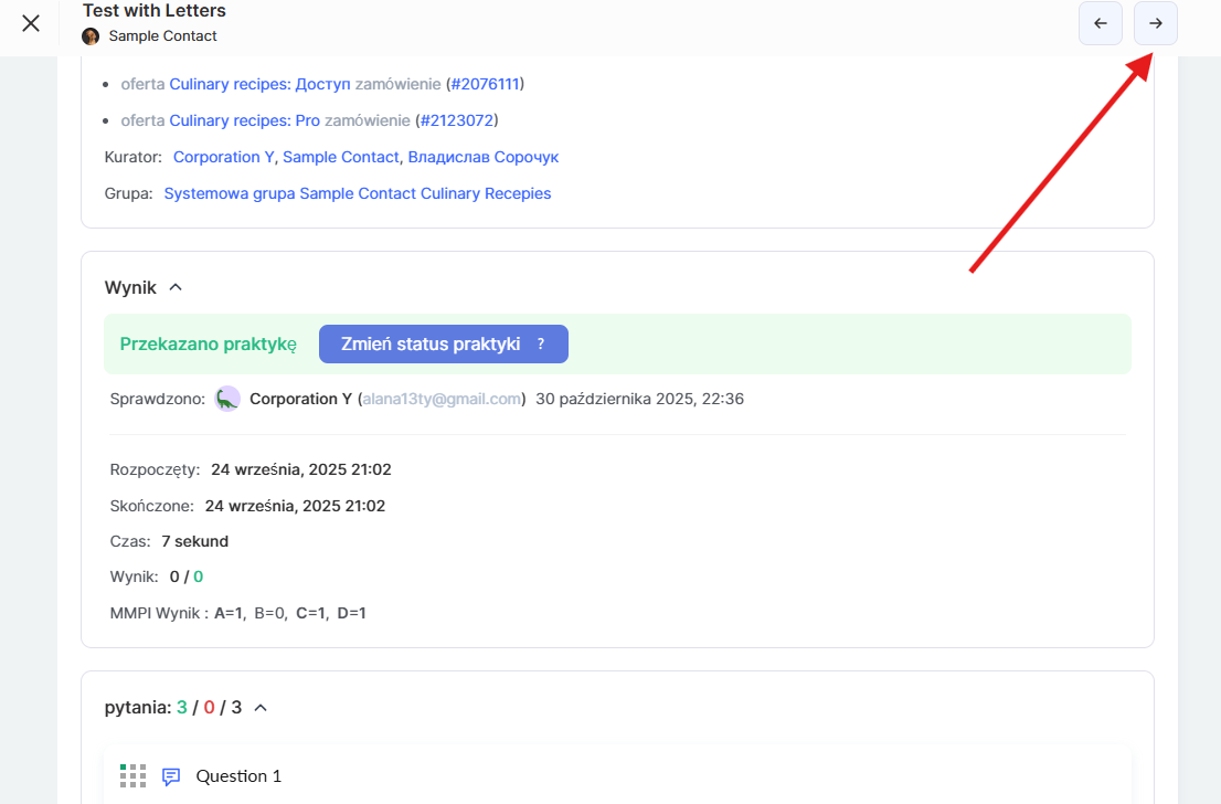 Po prostu użyj strzałek nawigacyjnych, aby przemieszczać się między praktykami — to bardzo wygodne, zwłaszcza gdy trzeba sprawdzić dużą liczbę prac.