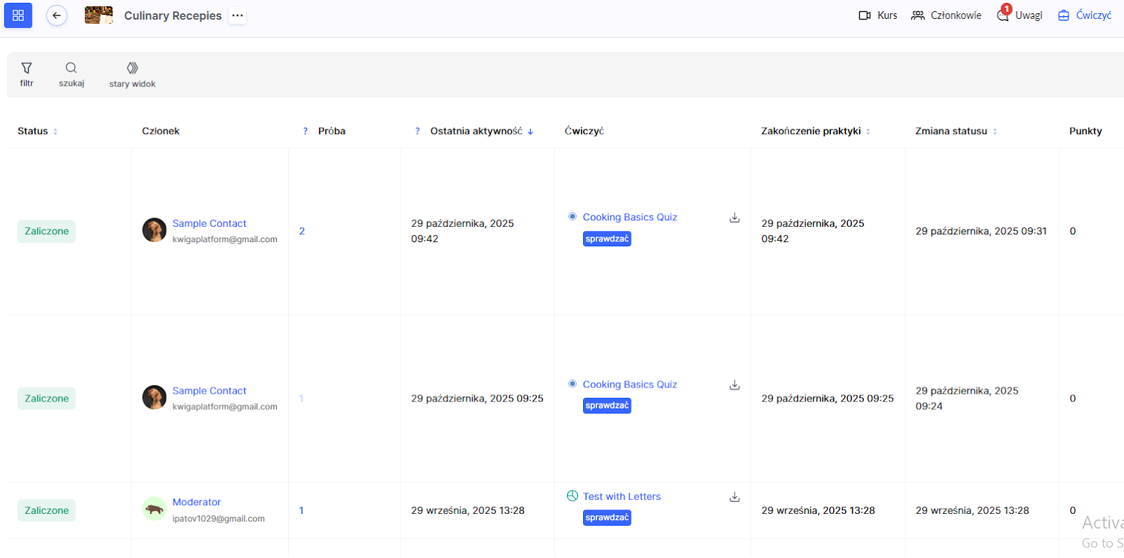 Jak sprawdzić zadanie praktyczne i zmienić status quizu