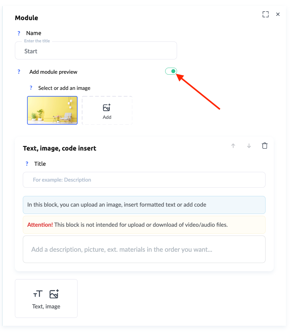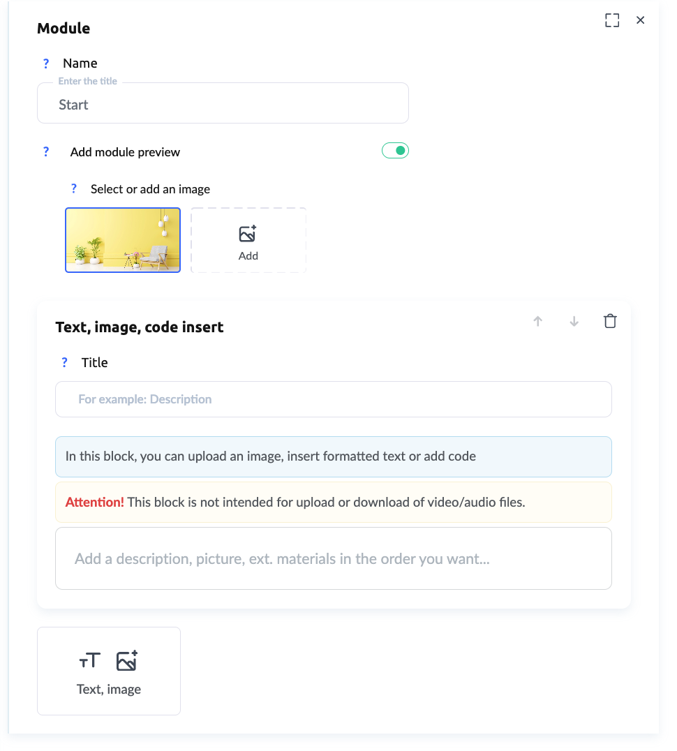 Możesz również dodać opis modułu, aby studenci rozumieli, co dokładnie będzie omawiane w tym bloku.