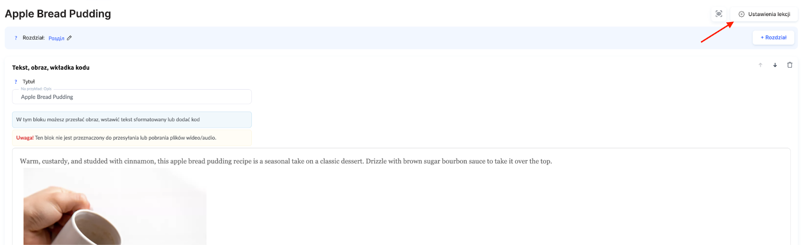 Aby uczynić program kursu jeszcze bardziej strukturalnym, możesz dodać obrazek podglądu do każdej lekcji. Będzie on wyświetlany obok nazwy lekcji w programie kursu, pomagając studentom lepiej orientować się w materiale.