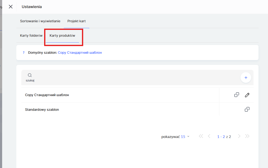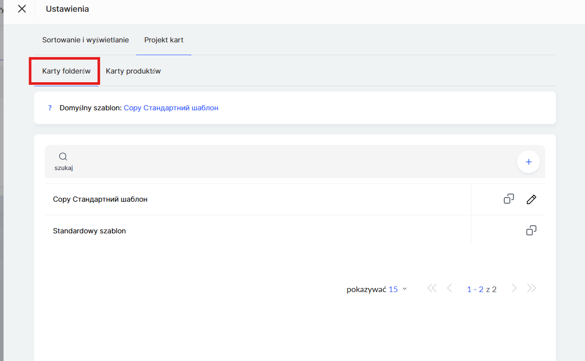 Domyślnie dostępny jest standardowy szablon wyglądu folderu. Możesz skopiować istniejący szablon i dostosować go do swoich potrzeb lub utworzyć nowy szablon od podstaw, klikając + (plus).