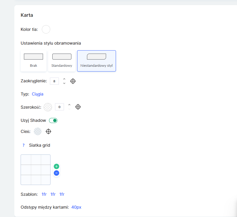 W sekcji Karta możesz skonfigurować parametry wizualne.
