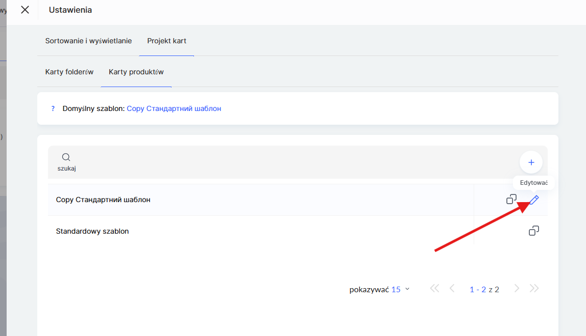 Domyślnie dostępny jest szablon Standard. Możesz skopiować istniejący szablon i dostosować go do swoich potrzeb lub utworzyć nowy szablon od podstaw.