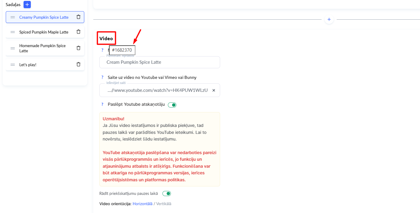 Anote esse número – é o ID do vídeo. Agora pode criar carimbos de data/hora!