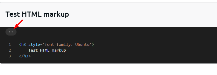 Você verá o código na página, e acima dele verá o botão.