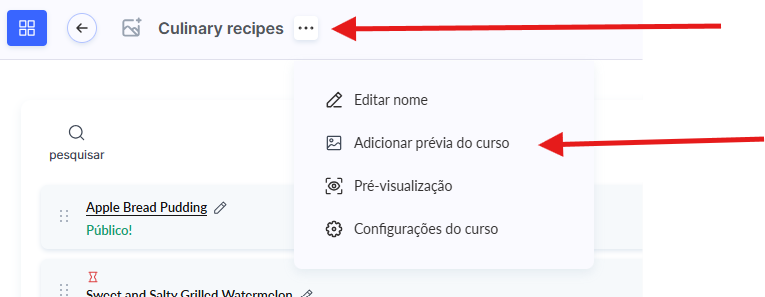 Clique no ícone com três pontos ao lado do nome do curso e selecione a opção Adicionar pré-visualização do curso.