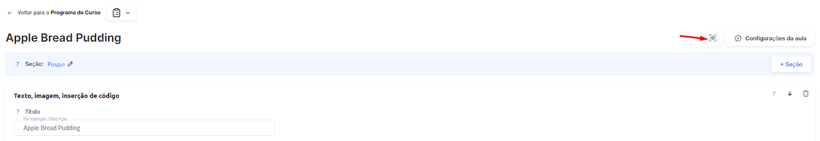 Depois de adicionar o exercício, os alunos o verão dentro do conteúdo da lição. Você pode usar a função de visualização para garantir que tudo está correto: abra o Editor de Lições, vá para o modo Visualização e veja como a tarefa aparece para o aluno.