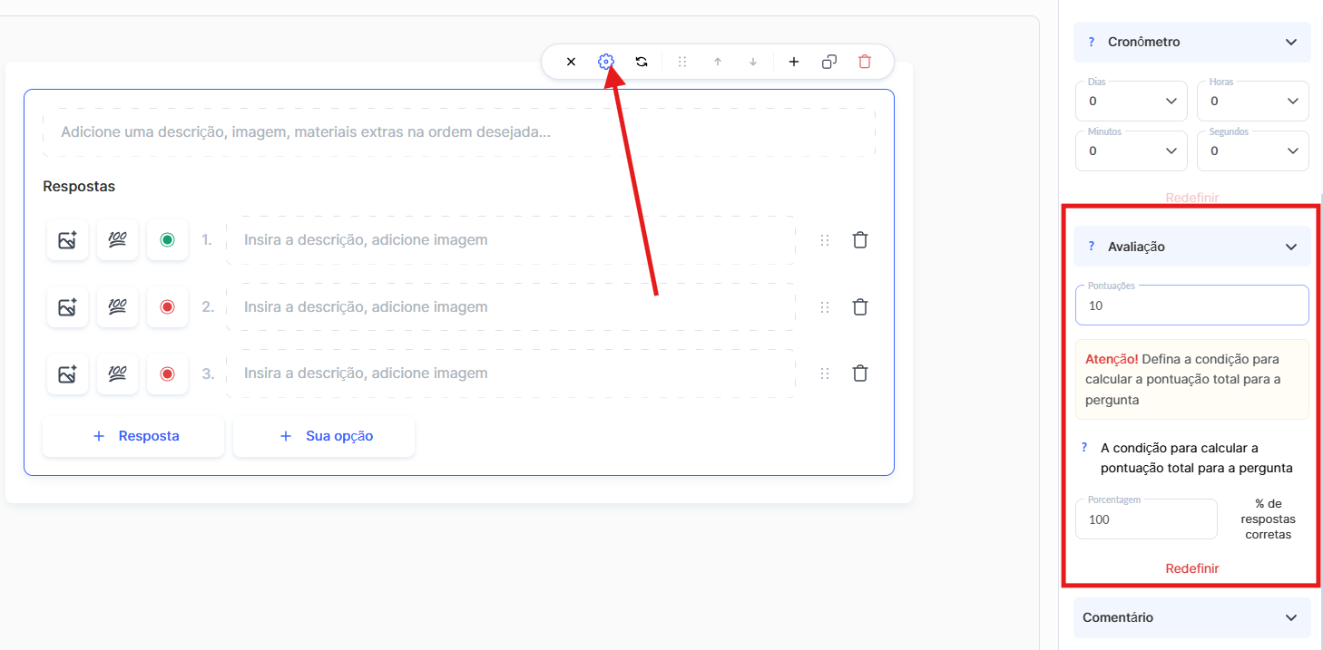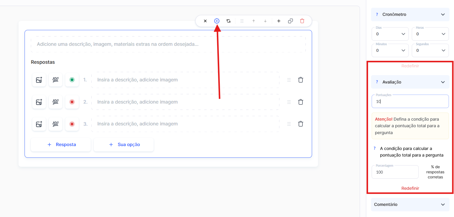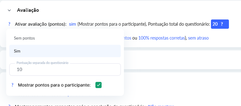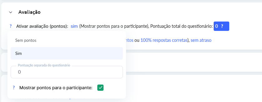 Ativar avaliação (pontos): escolha se as respostas receberão pontos ou não.