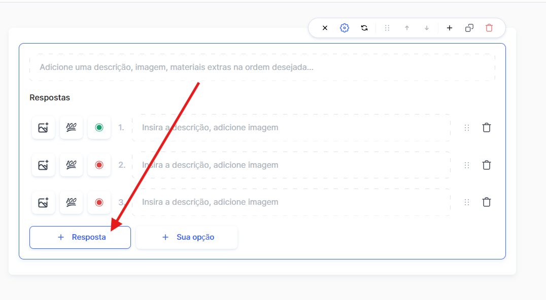 Adicione as opções de resposta usando o botão + Resposta