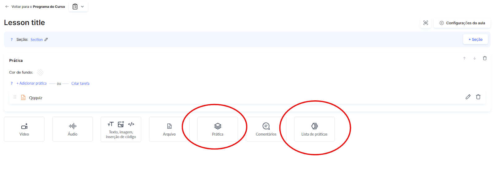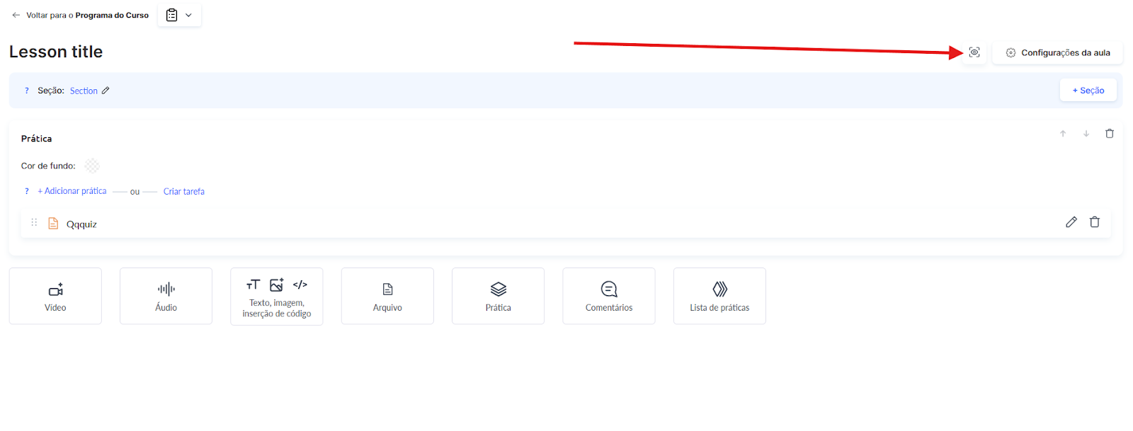 Para um guia detalhado, consulte o artigo: Como adicionar uma tarefa prática a uma aula.