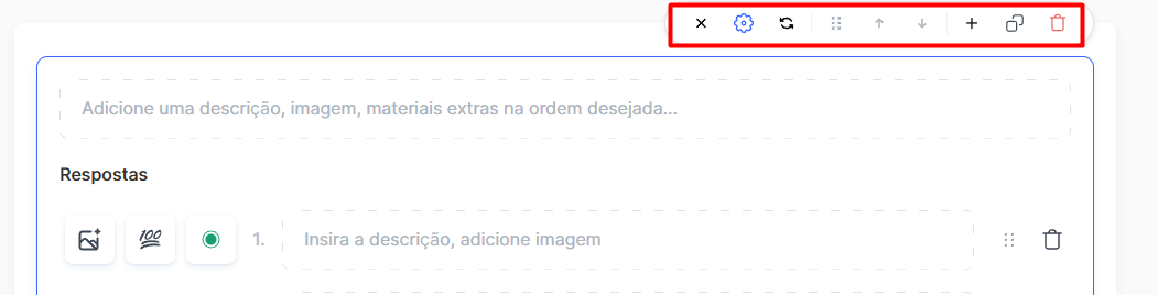 Ao passar o cursor sobre a pergunta, aparecerá uma barra de ferramentas que permite: