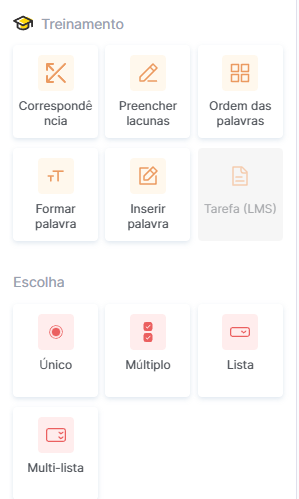 Você pode ler sobre os diferentes tipos de tarefas disponíveis na plataforma Kwiga no artigo Questionários, práticas: tipos de perguntas.