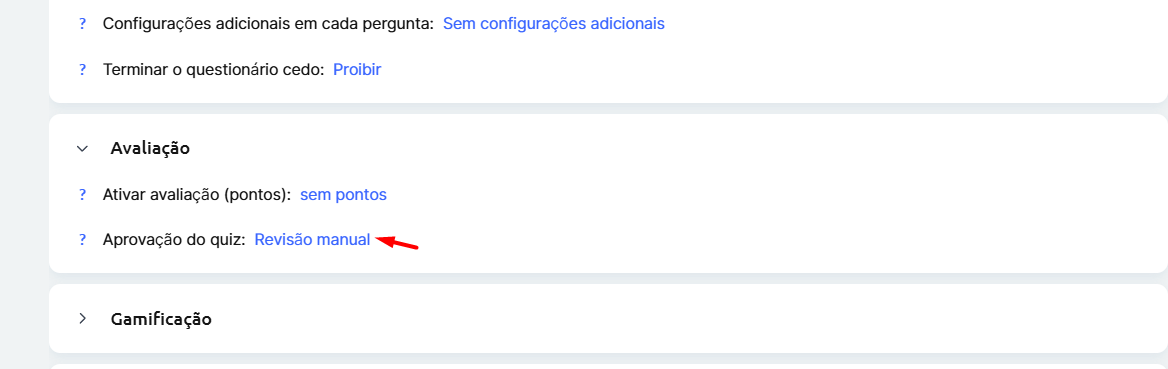 Para tarefas que exigem revisão manual, é necessário ativar a opção Aprovação — pelo tutor nas configurações do questionário.