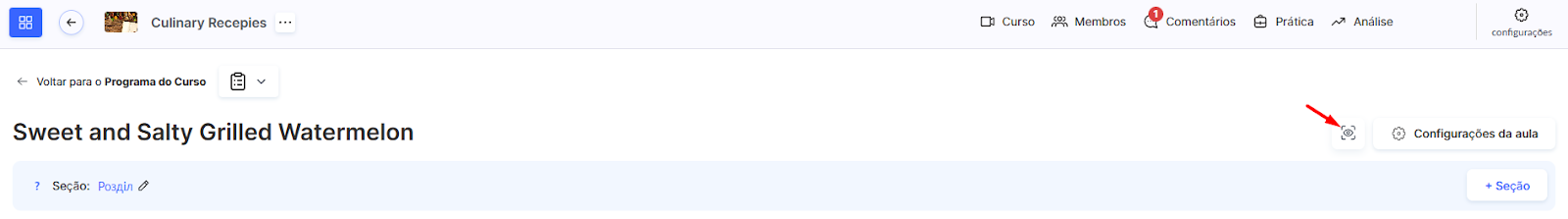 Após adicionar a tarefa, os alunos a verão no conteúdo da aula. Para garantir que tudo esteja correto, utilize a função Visualização prévia. Abra o construtor de aulas, ative o modo de visualização e confira como a tarefa aparece do ponto de vista do aluno.