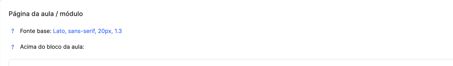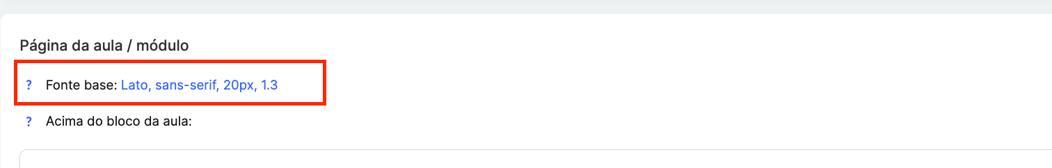 Para configurar, aceda às definições do curso, no separador Páginas públicas, role para baixo até ao bloco Página da aula / módulo – opção Fonte base.