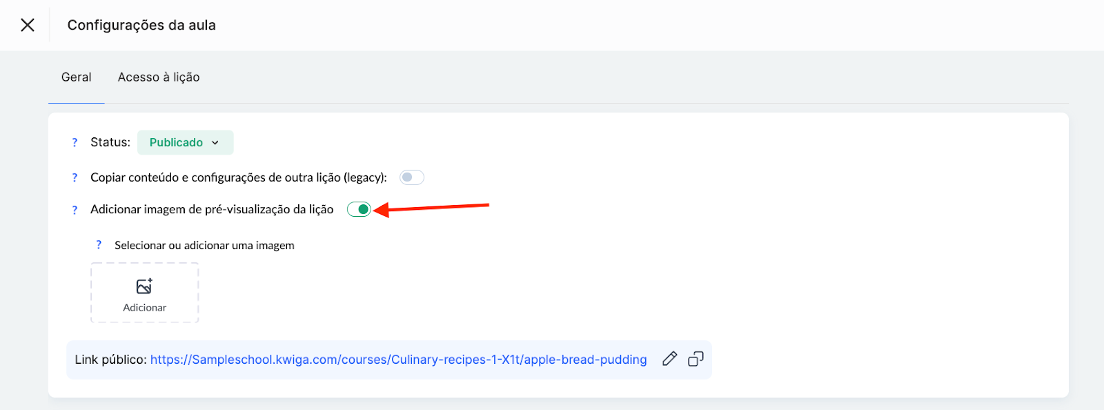 adicione uma imagem de pré-visualização que, por exemplo, corresponda visualmente à aula