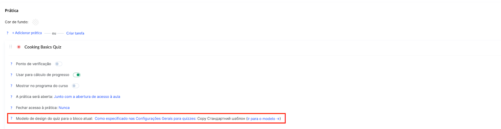 Na plataforma, pode destacar as tarefas práticas utilizando modelos de estilo. Isto torna os blocos de prática mais visíveis e ajuda os alunos a perceberem imediatamente onde devem realizar a tarefa.