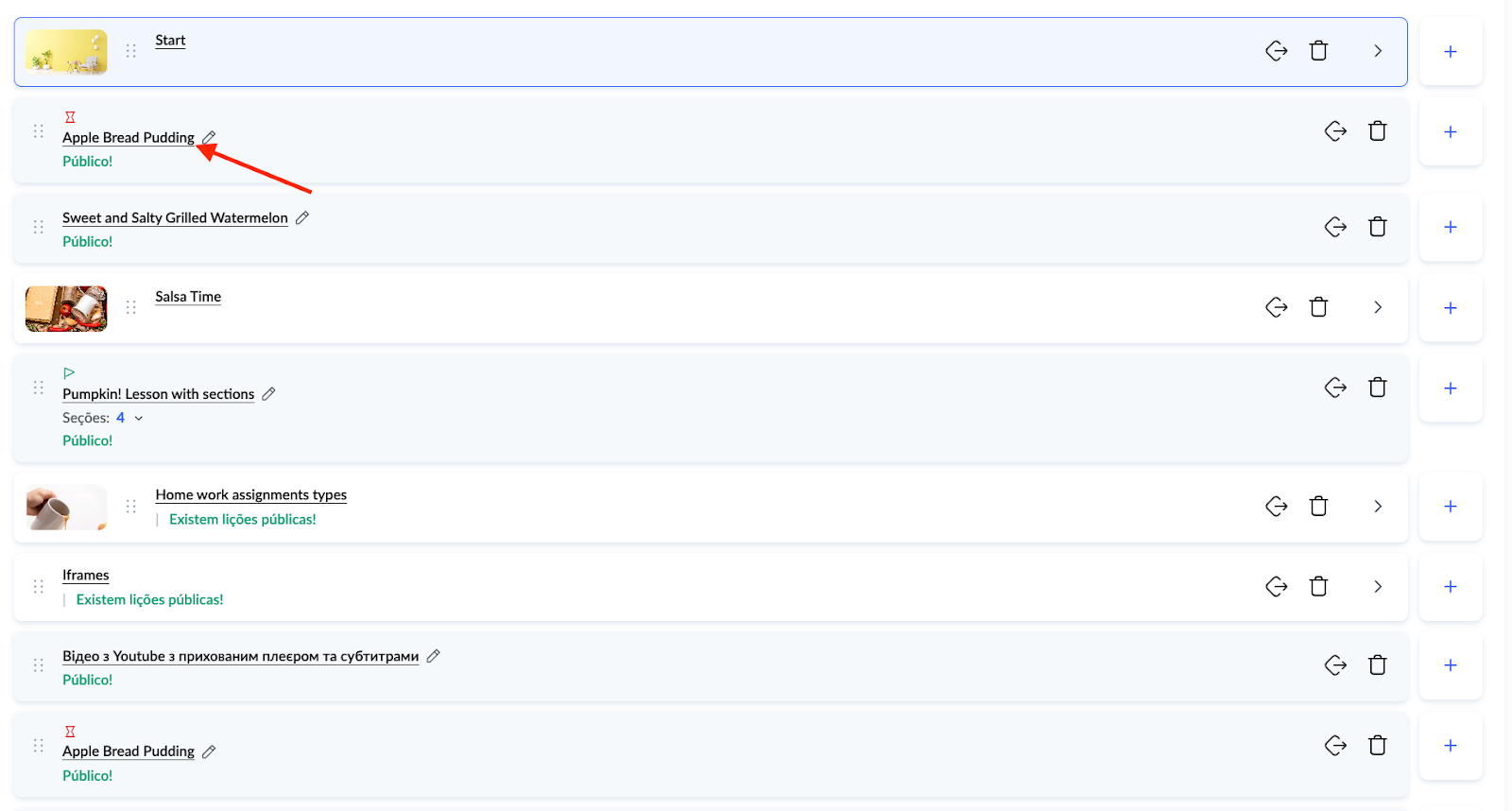 Para tornar o programa do curso ainda mais estruturado, pode adicionar uma imagem de pré-visualização a cada aula. Esta será exibida ao lado do título da aula no programa do curso, ajudando os alunos a orientarem-se melhor no material.
