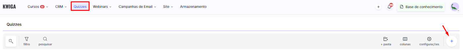 Aceda ao menu Quizzes e clique em + Quiz.