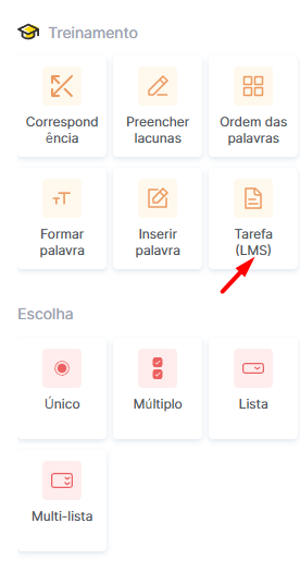 Selecione o tipo Tarefa LMS.