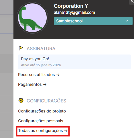 Comece clicando no ícone do perfil no canto superior direito da plataforma. Em seguida, selecione Configurações → Todas as configurações → Equipe. Este é o local onde você irá criar e gerenciar sua equipe.