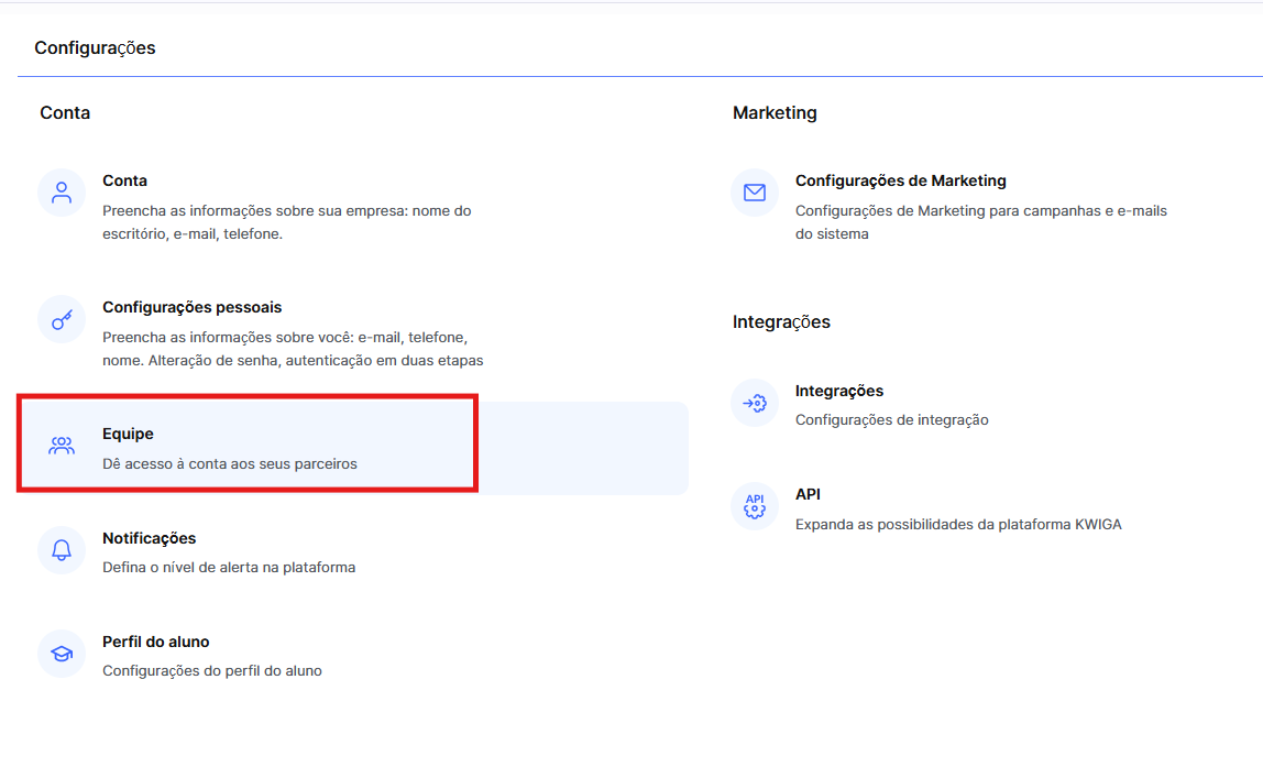 A configuração correta de acessos ajudará a otimizar o fluxo de trabalho, minimizar riscos e melhorar a colaboração dentro da equipe. Utilize as funcionalidades da plataforma Kwiga para criar um ambiente de trabalho conveniente e seguro para toda a sua equipe.