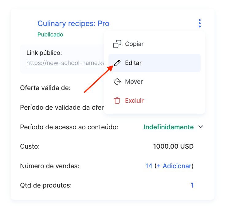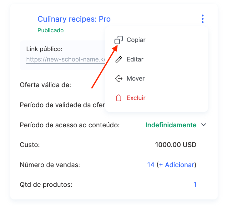 Haverá alterações no próprio curso? Por exemplo, mudanças nos vídeos, no conteúdo das aulas, nos trabalhos, no design ou nas sessões do Zoom agendadas, cujas gravações foram posteriormente carregadas, ou se deseja atualizar determinadas aulas, introduções de vídeo etc. Nesse caso, é necessário criar uma cópia do curso e novas ofertas.