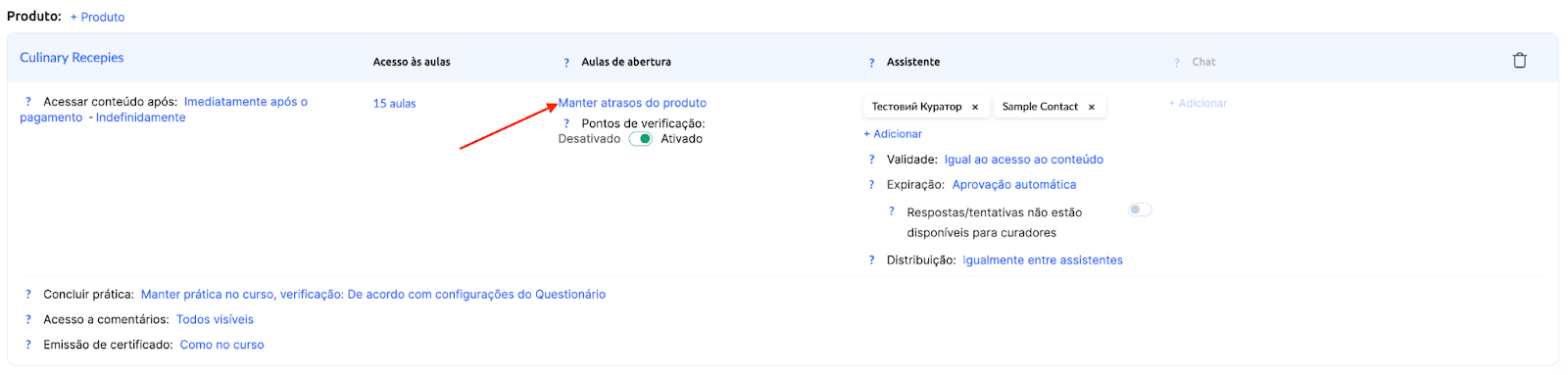 Encontre a coluna com os atrasos. É provável que a opção “Manter os atrasos como no produto” esteja selecionada.