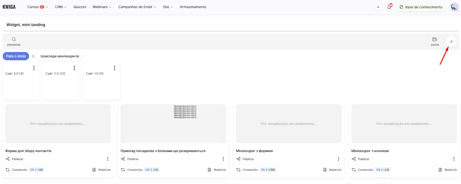 Depois disso, você pode criar a mini landing page na plataforma Kwiga.