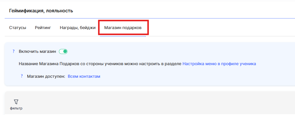 Подробная информация о настройке магазина подарков описана в отдельной статье.