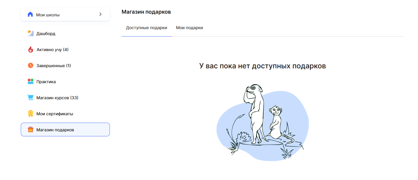 Вы можете создавать различные типы подарков: от цифровых продуктов на платформе (дополнительные курсы, модули, материалы) до внешних вознаграждений (сертификаты, консультации, физические товары). Условия получения подарка могут быть разными: обмен накопленных баллов или выполнение определённых условий, которые вы устанавливаете самостоятельно. Каждый подарок также может быть ограничен по количеству для создания эффекта эксклюзивности.