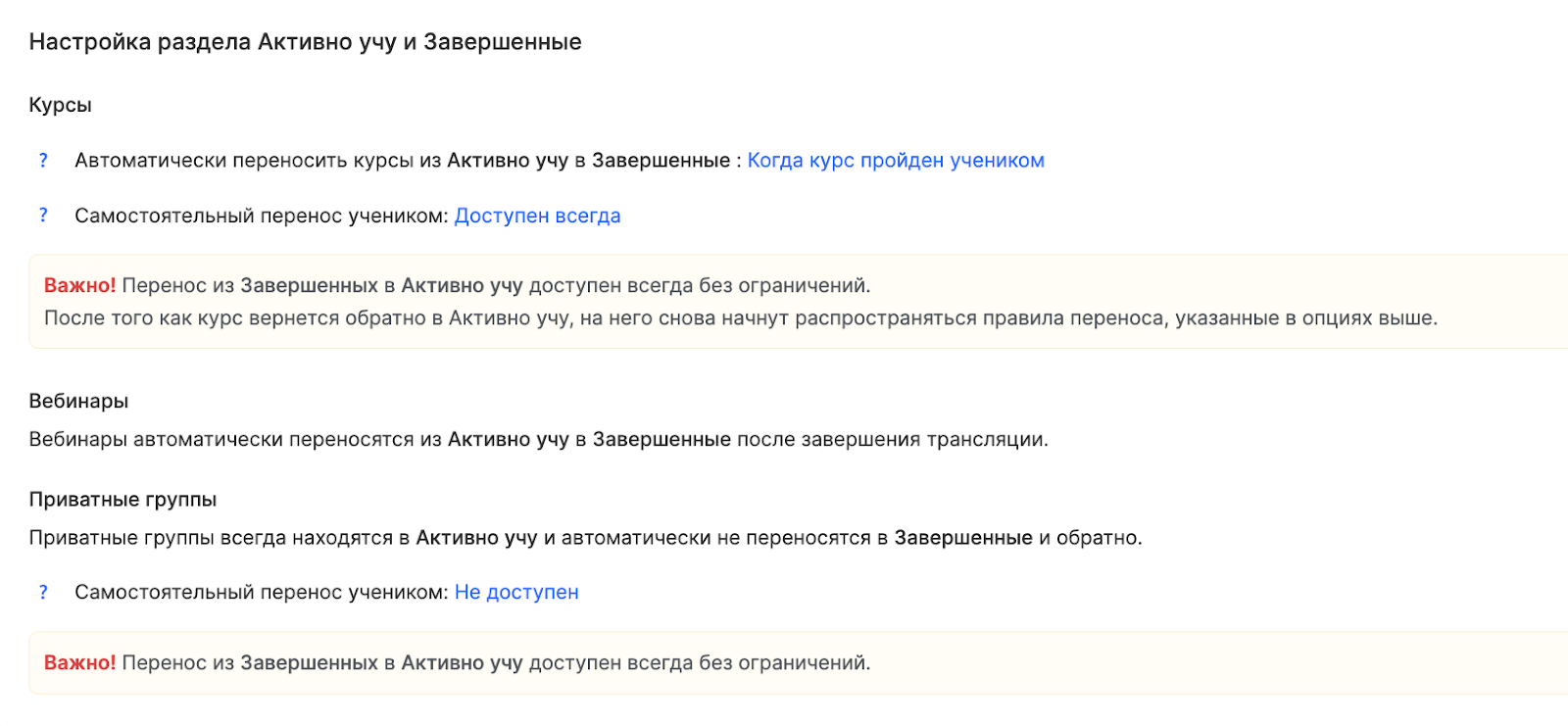 Третий позволяет оставить все курсы в активном разделе без автоматического перемещения.