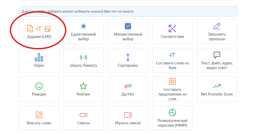 3. Выберите тип задания LMS Assignment (задание LMS).