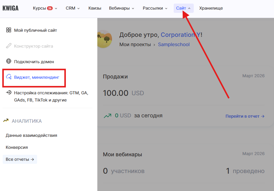 - Продажа через минилендинг, созданный на Kwiga