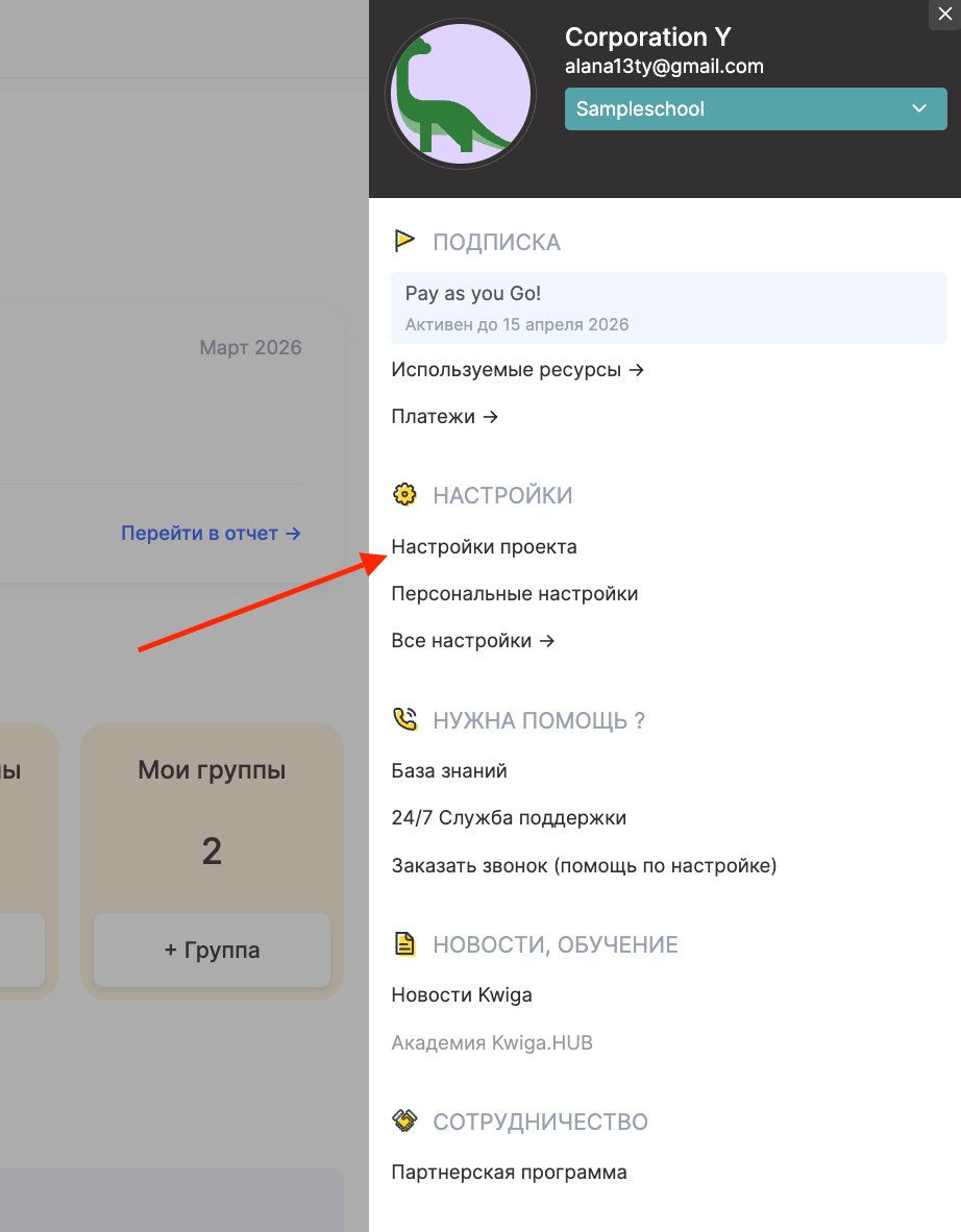 У каждого проекта на платформе есть уникальная ссылка в формате: названиеколы.kwiga.com.