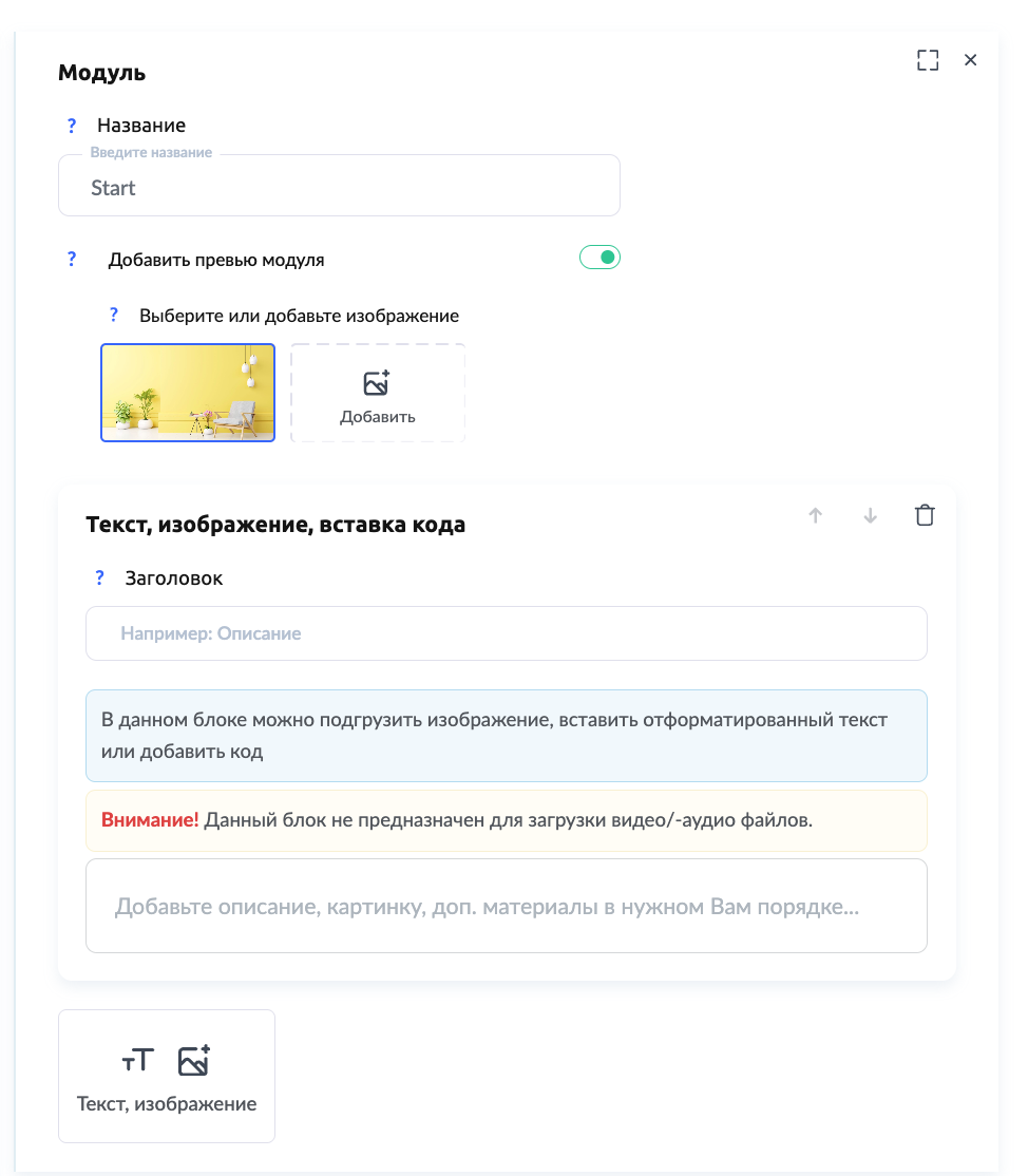 Также можно добавить описание модуля, чтобы студенты понимали, что именно будет изучаться в этом блоке.