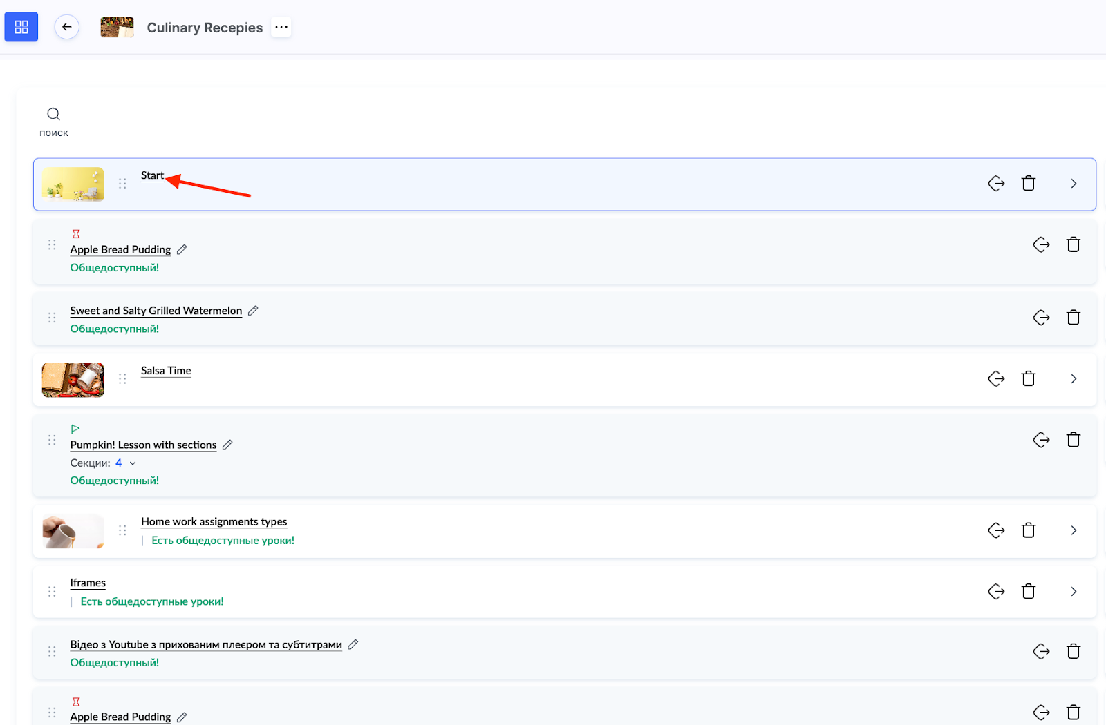 - Как скопировать наполнение урока