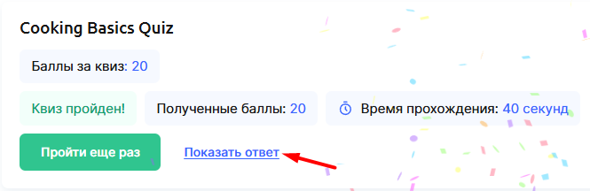 Обратите внимание! Чтобы ученики видели свои ответы и комментарии после прохождения квиза, нужно включить соответствующие настройки показа результатов. Подробно об этом читайте в статье Как настроить тест, чтобы ученик мог видеть свои ответы.