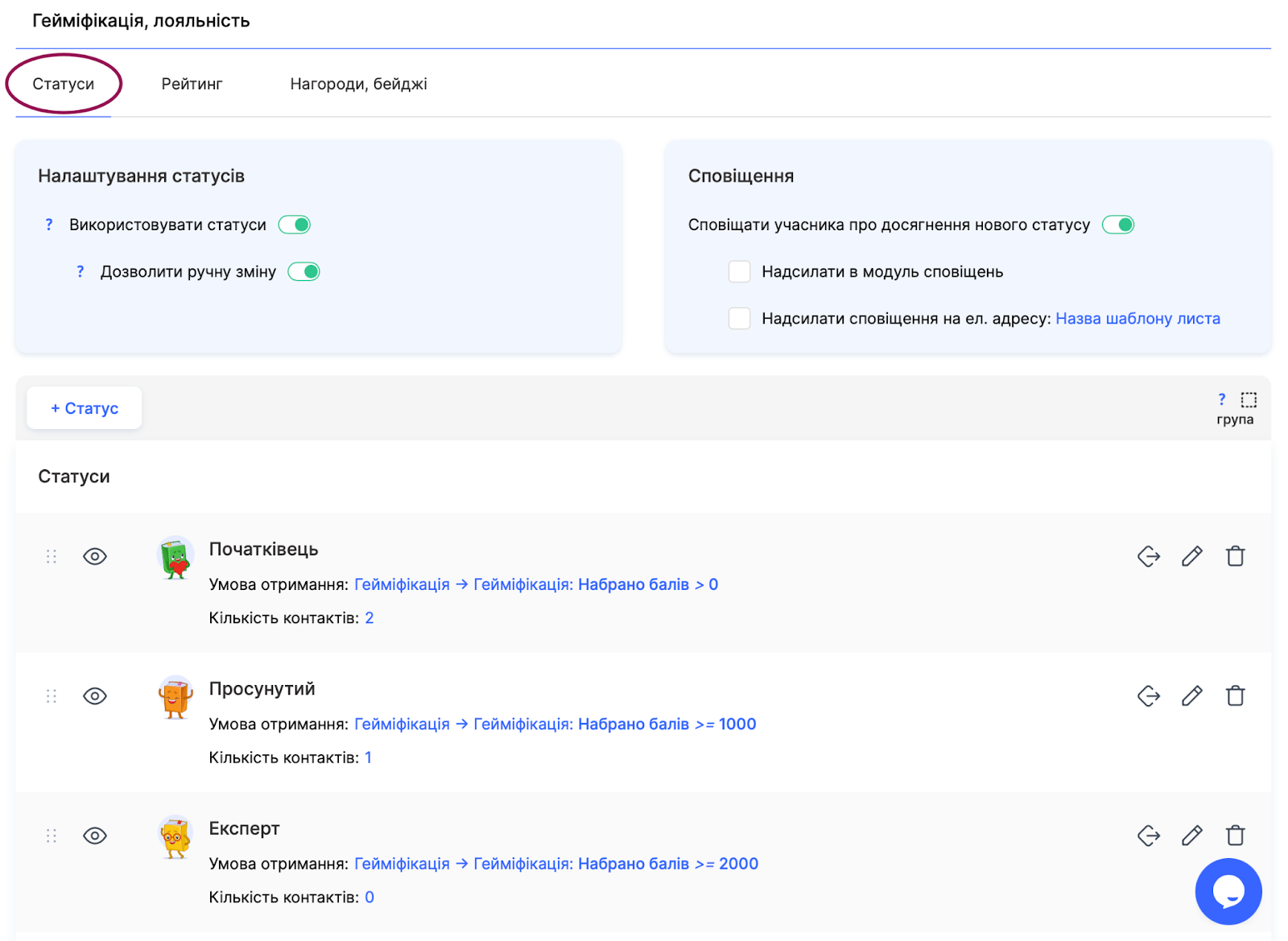 Детальну інформацію про налаштування статусів можна знайти в окремій статті.