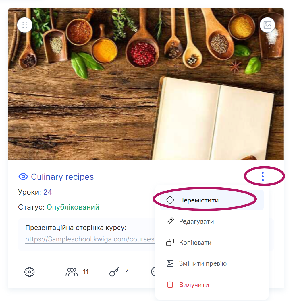 Обкладинку можна змінити в налаштуваннях курсу, що дозволяє зробити сторінку більш впізнаваною та привабливою.