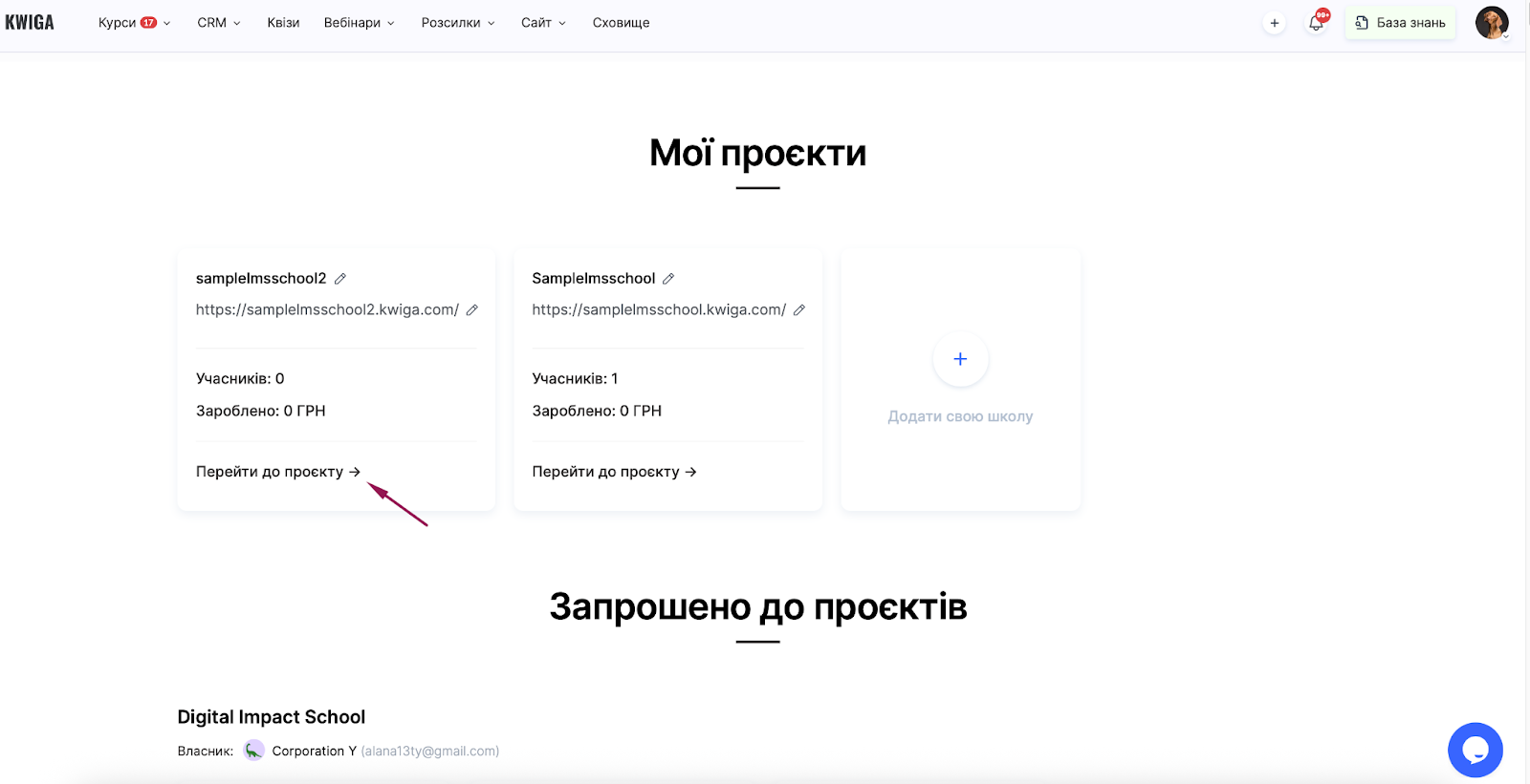 Створити власну школу — новий проєкт, де ви є власником.