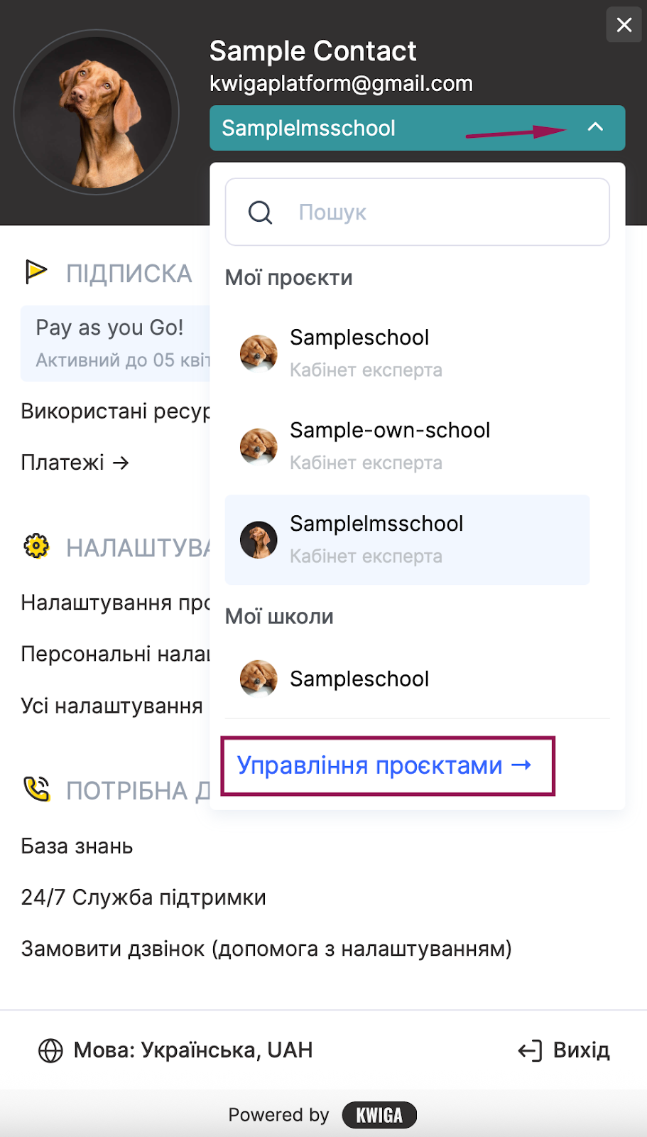 Переключатись між проєктами можна так само через Управління проєктами.
