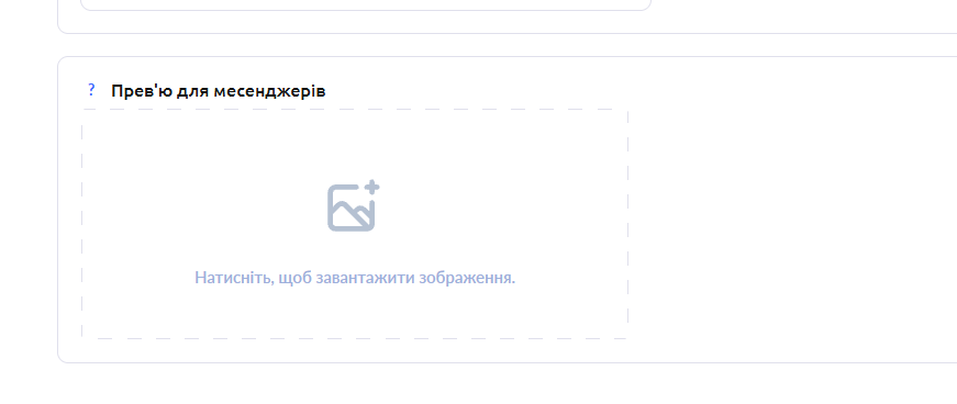 Опуститься вниз сторінки в розділ Прев'ю для месенджерів і виберіть потрібне зображення. На цій сторінці всі зміни зберігаються автоматично.