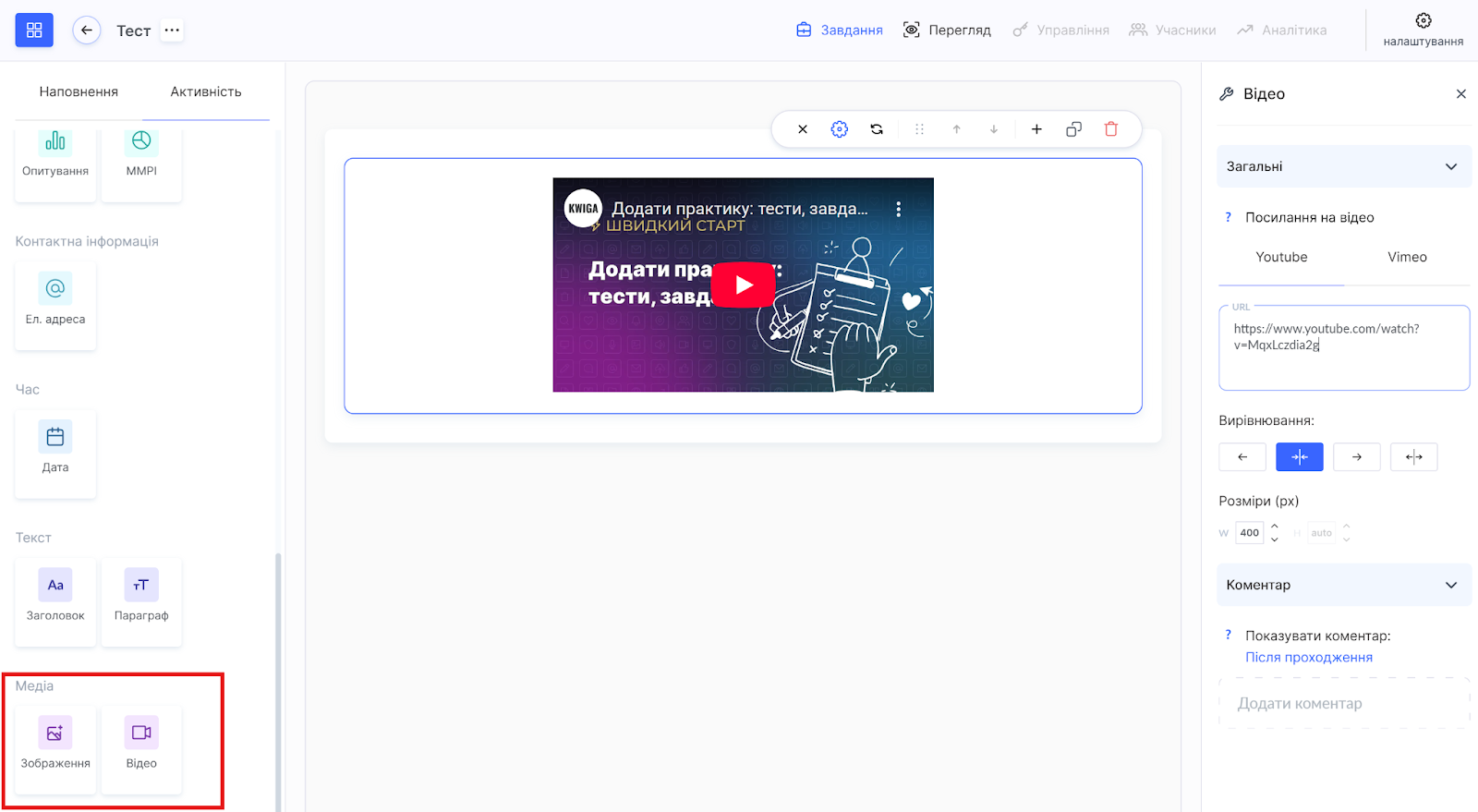 Вставка відео-контенту для створення більш інтерактивних та наочних завдань.