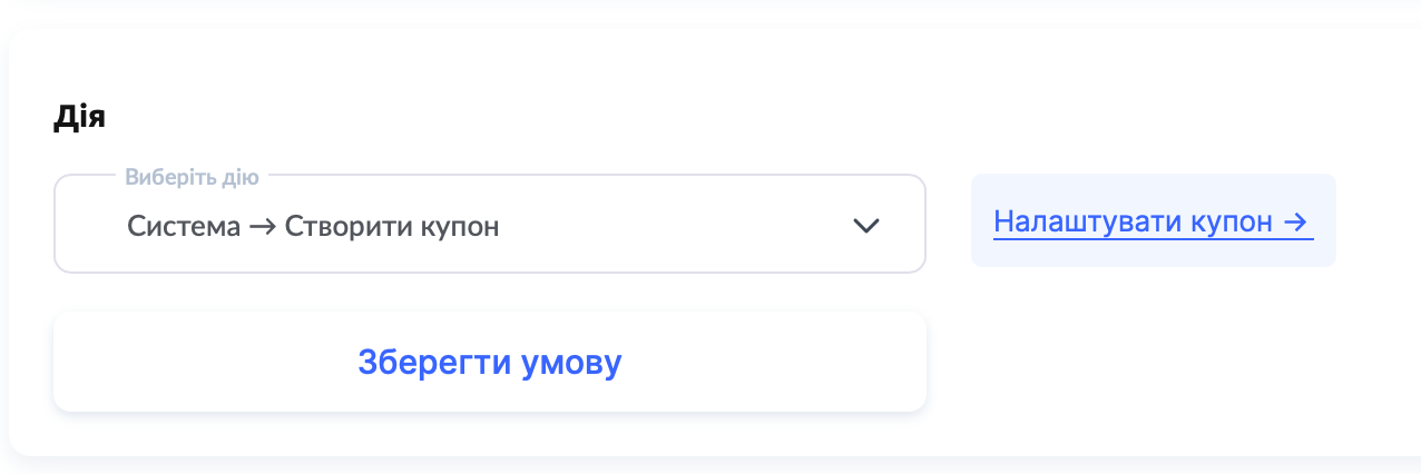 При налаштуванні автоматизації ви можете додати дію Створити купон з наступними параметрами:
