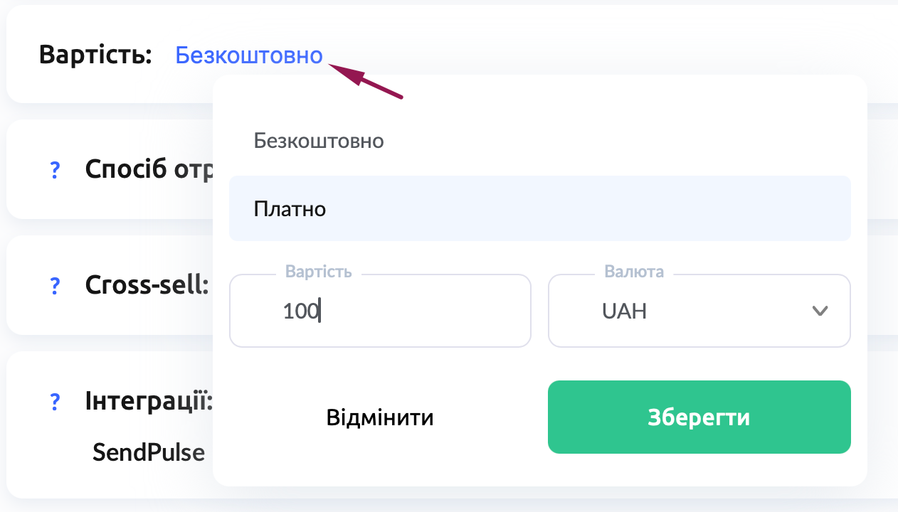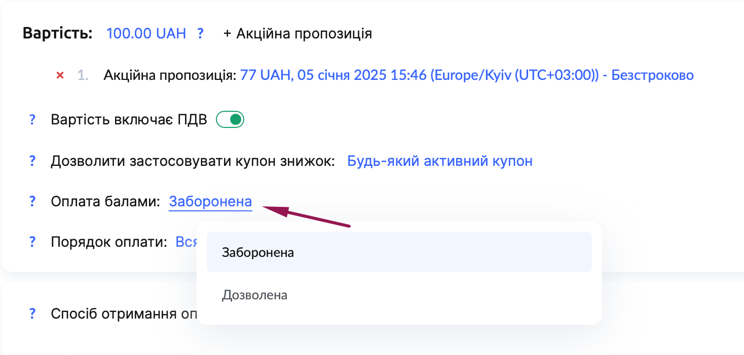 Оплата балами: Якщо у вашій школі налаштована бонусна програма, увімкніть цю опцію, щоб учні могли використовувати накопичені бали для оплати курсу.