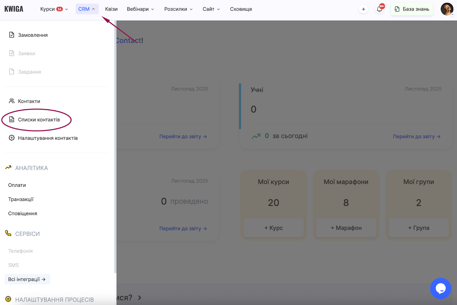 Зверніть увагу, що списки наповнюються поступово, зазвичай контакти додаються майже одразу, але оновлення може відбуватись до 20 хвилин.