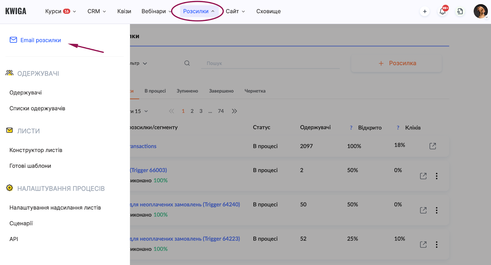 Детальніше про налаштування розсилок та роботу з конструктором листів в окремій статті.